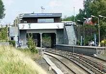 The farmland surrounding Linderud manor was largely built in the 1950s and 1960s, eventually forming an urban neighborhood.[2] A primary and a secondary school were constructed between 1964 and 1968,[7][8] although a school had existed in conjunction with the farming community between 1860 and 1900.[9] The Norwegian Military Academy is located at Linderud as well.[10] The shopping mall Linderud senter was opened in 1968, and enlarged in 1992[9] and 2009.[11] Since 1966 the neighborhood is served by Linderud station of the Oslo T-bane network.[9]