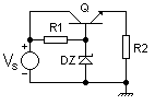 The image shows a simple shunt voltage regulator that operates by way of the Zener diode's action of maintaining a constant voltage across itself when the current through it is sufficient to take it into the Zener breakdown region. The resistor R1 supplies the Zener current as well as the load current IR2 (R2 is the load). R1 can be calculated as , where is the Zener voltage, and IR2 is the required load current.