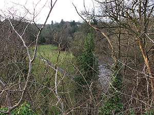 The park contains a large mansion, Linn House, which was built c.1811[3] for Rev. James Hall, who a short time later became bankrupt resulting in the house and estate being put up for auction on behalf of the creditors. James Hall's wife, Mary Maxwell, separately owned adjacent land at Bogton which was the subject of a legal action by the creditors against her, which was determined at the Court of Session in January 1814.[4] The mansion and surrounding estate was sold again in 1820, by which time the familiar cast iron "Ha'penny Bridge" was in place.[5]