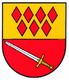 The German blazon reads: Von Gold über Rot geteilt, oben 7 (4:3) zu zwei Balken aneinandergereihte rote Rauten, unten ein schrägrechtes gewendetes, silbernes Schwert mit goldenem Griff.