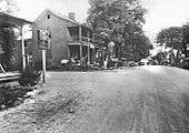 The photograph is the National Road, looking East toward Baltimore. The road between the two houses runs north for 2 miles (3.2 km) to Woodbine, where the Patapsco River and the B&O Railroad cross the road. About one mile north of Lisbon exists the original road that ran from Baltimore to Frederick. This road runs west toward Poplar Springs and east toward Sykesville. The exact route of this road is not discernible at this time.