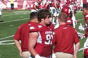 The National Football League (NFL) have drafted 269 players who had played for the University of Arkansas Razorbacks since the league began holding drafts in 1936.[a 1] The Razorbacks' highest draft position was second overall in 1954, when Lamar McHan was selected by the Chicago Cardinals.[3][4] Arkansas' first drafted player in the NFL was Jack Robbins, who was the fifth overall pick by the Chicago Cardinals in 1938.[5] Five former players were selected from the latest NFL draft: Trey Flowers, Martrell Spaight, Tevin Mitchel, Darius Philon, and A.J. Derby.