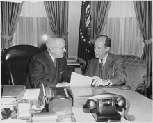 Adlai Stevenson '18 in the Oval Office with President Truman in 1952