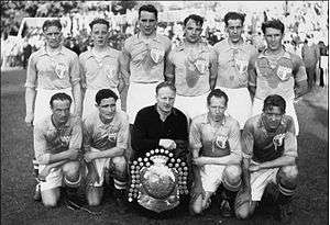Malmö FF's first trophy was the Division 2 Sydsvenska Serien, which they won in the 1920–21 season.[9] Their first national senior honour came first in 1944, when they won the 1943–44 Allsvenskan title. The club also won Svenska Cupen for the first time the same year. In terms of the number of trophies won, the 1970s was Malmö FF's most successful decade, during which time they won five league titles and four cup titles.[3]