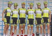 Six riders of the team at the 2014 Thüringen Rundfahrt der Frauen.