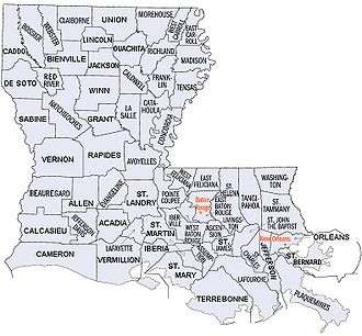The following are approximate tallies of current listings by parish. These counts are based on entries in the National Register Information Database as of April 24, 2008[2] and new weekly listings posted since then on the National Register of Historic Places web site.[3] There are frequent additions to the listings and occasional delistings and the counts here are approximate and not official. New entries are added to the official Register on a weekly basis.[4] Also, the counts in this table exclude boundary increase and decrease listings which only modify the area covered by an existing property or district, although carrying a separate National Register reference number.