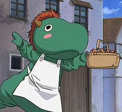 A dragon mascot used to market bread, buns and cakes by a baker. Originally, Pacifica wears the costume as a part-time advertising job but then gives the job to Leopold. Leopold is allowed to keep the costume as a reward for helping to sell the bread and then often uses the costume as pajamas. At one point, Leopold uses his Mr. Soopy costume to play the part of a dragon, while Pacifica (then known as Pamela) plays the part of the valiant knight and his horse (the design strikingly similar to Leopold and his horse Parabellum). Raquel seems to have an almost obsessive liking for Mr. Soopy, and once conjured up many little Mr. Soopies to help Pacifica prepare dinner.
