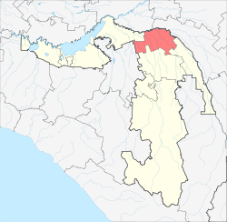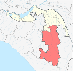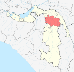 A district (район) is an administrative-territorial unit with an administrative center (usually the district's largest settlement).[1] Districts govern the urban and rural localities (see below) located on their territories, but not the cities/towns of the republican significance.[1]