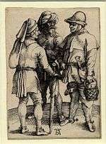 ![]() | Three Peasants in Conversation | 1496–1497 | Copper engraving | 108 × 77 mm | B86 |