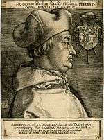 ![]() | Cardinal Albrecht of Brandenburg; or the Great Cardinal | 1523 | Copper engraving | 174 × 127 mm | B103 |