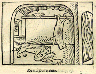 A print showing cats and mice from a 1501 German edition of Aesop's fables.
