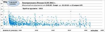 | 2011-04-12 14:07 | Mj 6.4[1] | 37.052°N | 140.643°E | 15 km[1] | lower 6 | |