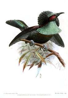- Sharpe's lobe-billed parotia (presumed Parotia sefilata x Paradigalla carunculata). Originally described as species Loborhamphus ptilorhis Sharpe, 1908.