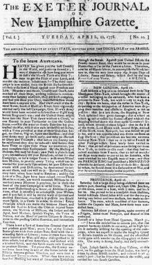 - The Exeter Journal, or, The New-Hampshire Gazette, and Tuesday's General Advertiser. W., May 12-June 9, 1778.[1]