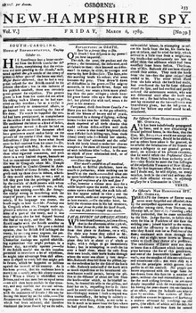 - The New-Hampshire Spy. S.W., Oct. 24, 1786-Mar. 3, 1789.[1]