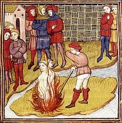 This list contains persons burned by various religious groups, after being deemed heretics. The list does not attempt to encompass the list of those executed by burning (such a one would include many other people such as victims of witch hunts or other persecutions). Some of the victims, such as Quirinus Kuhlmann and Jacques de Molay, were executed primarily for political purposes; the charges of heresy were simply official excuses. After they were convicted by the Church, they were turned over to the local government for execution because of religious restrictions that kept ecclesial clergy from actually carrying out the executions.