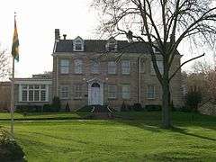 Plantations that operated within the present-day boundaries of West Virginia were located in the counties of the Ridge-and-Valley Appalachians and in the Kanawha and Ohio River valley regions. Beginning in the mid-to-late 18th century, members of the Washington family and other prominent Virginia families began to build elegant Georgian mansions on their plantations in the Ridge-and-Valley Appalachians region of present-day West Virginia.[1] Plantations initially developed in the counties lying within the Northern Neck Proprietary of Thomas Fairfax, 6th Lord Fairfax of Cameron within the Shenandoah Valley and South Branch Potomac River valleys.[2] Slavery as practiced through plantations in the American South was carried over from the plantations of the Piedmont and Tidewater regions of Virginia, where plantations had become the foundation of society and industry.[2] Following the French and Indian War, settlement and agricultural development continued unabated in the Shenandoah and South Branch Potomac valleys.[3] Early instances of western Virginia plantations with grand homes include the John Ariss-designed Harewood (1774) for George Washington's brother Samuel Washington and Happy Retreat (1780) built by Washington's younger brother Charles Washington, both of which are located near Charles Town in present-day Jefferson County.[4][5][6] In Hampshire County, Nicholas Casey constructed a Georgian mansion (1774) at his Wappocomo plantation, one of the first plantation houses of its kind in the South Branch Potomac River valley.[7]