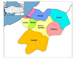 Below is the list of populated places in Artvin Province, Turkey by the districts. In the following lists, first place in each list is the administrative center of the district. [1]