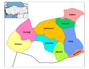Below is the list of populated places in Gaziantep Province, Turkey by the districts. The first two districts (Şahinbey and Şehirkamil) are actually parts of Greater Gaziantep. In the following lists first place in each list is the administrative center of the district.[1]