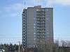 Mackenzie Place, known locally as the High Rise, is a 17 storey building located in Hay River on the south side of Great Slave Lake. Although no accurate height is known it is sometimes called the tallest building in the NWT. An estimated height of 57.64 m (189.1 ft) is given for the building that was completed in 1975 and was until the building of Centre Square - Northern Heights in 1996 the tallest building for 40 years. Unlike Yellowknife there are no other buildings in Hay River of any height so it dominates the skyline and is visible from 75 km (47 mi) away.[20][21][22][23][24]