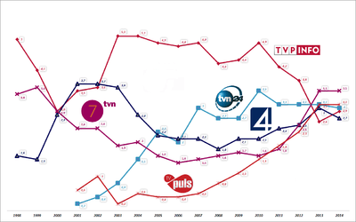 | Polsat | 12/1992 | 11.60 | 11.84 | 12.24 | 13.97 | 14.53 | 13.84 | 14.81 |