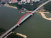 | | 31 | Nanning Yonghe Bridge | 335 m (1,099 ft) | concrete filled steel tubular | 2004 | Nanning (Guangxi) 22°48′12.8″N 108°17′30.8″E / 22.803556°N 108.291889°E / 22.803556; 108.291889 (Nanning Yonghe Bridge) | China | [19] |