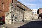 Section of wall running west from Polymond Tower to remains of semi-circular tower to east of Bargate. The wall is scheduled as an ancient monument. | |||