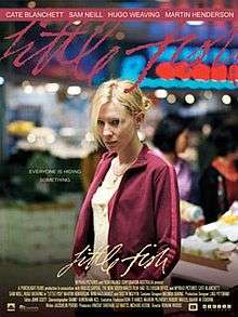 Little Fish is a 2005 Australian film directed by Rowan Woods and written by Jacquelin Perske. It was filmed in and around Sydney, in Cabramatta and in Fairfield. The film was developed and produced by Vincent Sheehan and Liz Watts of Porchlight Films with Cate Blanchett and her husband Andrew Upton's production company Dirty Films, receiving an Associate Producer credit.[1]