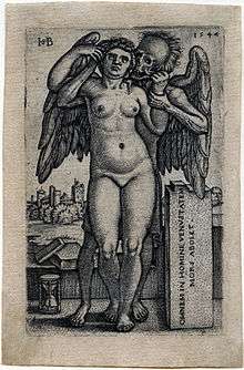Their engraving style was based on the work of Nuremberg master printmaker Albrecht Dürer, who was still living in the city until 1527, and in whose workshop Pencz at least may have trained,[6] and the Italian Marcantonio Raimondi, with whom Barthel Beham is supposed to have worked in Rome. Raimondi, and the exterior fresco friezes of Polidoro di Caravaggio, influenced their choice of subjects and compositional style,[7] to which Northern themes of death (Death appears personified in many prints, as above) and humour are added. The prints of Hans Baldung Grien contain similar treatments of sexual themes.