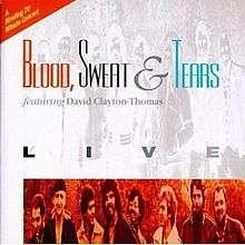 Live is a live album by the band Blood, Sweat & Tears, that was recorded in 1980 and released on compact disc in 1995 by Avenue Records through Rhino Records. This album was recorded at the Street Scene in Downtown Los Angeles on October 12, 1980. This set was recorded five years after the Live In Concert/Live And Improvised album. The band's hit songs included in this collection were compressed into a 15-minute medley instead of the full-length versions that were included on their previous live album. The rest of the songs here are from the Nuclear Blues album they were touring to support at the time of this recording. One exception was an 11 1⁄2-minute version of "Gimme That Wine" that was originally released on the Brand New Day album in 1977.