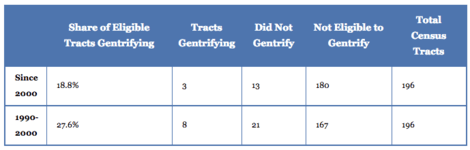 - "More than a fifth of Boston neighborhoods – 21 percent of the 57 city [census] tracts described as eligible to gentrify – have become gentrified since 2000, as top incomes of residents and home values rose, according to Governing magazine. In the previous decade (1990 to 2000) only 6.7 percent became gentrified out of the 75 eligible tracts." [10]