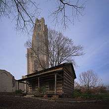 The Log Cabin at the University of Pittsburgh, located near Forbes Avenue, in Pittsburgh, Pennsylvania adjacent to the school's Cathedral of Learning, serves as a landmark that symbolizes the university's origins on the 18th Century western frontier of the early United States. The current log cabin, estimated to date from the 1820s to 1830s,[1] was reconstructed on the university's campus for its bicentennial celebration in order to represent Pitt’s original log structure that served the institution through the school's founding in 1787 to the construction of a brick building sometime in the 1790s.[2] The Log Cabin often appears in images and promotional material, particularly when relating to the history of the university.