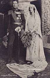 In 1923 Crown Prince Gustaf Adolf of Sweden, having been for three years the widower of Louise's mother's cousin Margaret of Connaught, paid a visit to London and, to Louise's surprise, began to court her.[2] Although as a young woman Louise had said that she would never marry a king or a widower, she accepted the proposal of a man destined to be both. However, under §5 of the 1810 Swedish Succession Law (Act 1810:0926), a prince of the Swedish royal house forfeited his right of succession to the throne if he "with or without the King’s knowledge and consent, married a private Swedish or foreign man’s daughter" (med eller utan Konungens vetskap och samtycke, tager til gemål enskild svensk eller utlänsk mans dotter). Once the couple's engagement was announced, there were lively discussions in the media about whether the bride-to-be was constitutionally eligible to become Sweden's future queen.[3] In response the Swedish Foreign Ministry, citing the law in question, clarified the term "a private Swedish or foreign man's daughter" to mean "he who did not belong to a sovereign family or to a family which, according to international practice, would not be equal thereto" (som icke vore medlem av suverän familj eller familj som enligt internationell praxis vore därmed likställd), and announced that the Swedish government had "requested the British government's explanation of Lady Louise Mountbatten's position in this respect."[3] The ministry further announced that following the British government's reply to its inquiry and the subsequent investigation into the matter, it had been determined that the Crown Prince's choice of a future wife was in compliance with the succession law, thereby concluding debate on the imminent nuptials.[3]