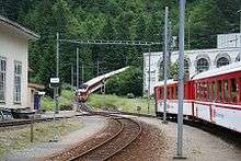 At Boden on the outskirts of Engelberg the old and new routes rejoin, and run under adhesion into the terminal Engelberg station.[2][9]