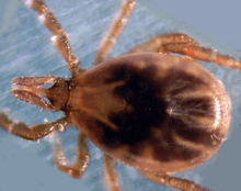 Lyme disease is classified as a zoonosis, as it is transmitted to humans from a natural reservoir among small mammals and birds by ticks that feed on both sets of hosts.[42] Hard-bodied ticks of the genus Ixodes are the main vectors of Lyme disease (also the vector for Babesia).[43] Most infections are caused by ticks in the nymphal stage, because they are very small and thus may feed for long periods of time undetected.[42] Larval ticks are very rarely infected.[44] Although deer are the preferred hosts of the adult stage of deer ticks, and tick populations are much lower in the absence of deer, ticks generally do not acquire Lyme disease spirochetes from deer. Rather, deer ticks acquire Borrelia microbes from infected small mammals and occasionally birds, including the white-footed mouse, Peromyscus leucopus.[45]