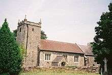 The Church of England parish church of St Mary the Virgin is 1⁄4 mile (400 m) northwest of the modern village, on the former site of the village deserted in the 14th century. The church's west tower is 13th-century, the chancel is 14th-century and the rest of the church was rebuilt in about 1500. It is a Grade I listed building.[5] The west tower has six bells, the oldest of which was cast in about 1400.[6]