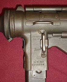 After its introduction to service, reports of unserviceability of the M3 commenced in February 1944 with stateside units in training, who reported early failure of the cocking handle/bolt retraction mechanism on some weapons.[6] Similar reports later came from U.S. forces in Britain who were issued the M3.[6] An investigation revealed several deficiencies in the construction of the M3's bolt retraction mechanism, together with issues concerning barrel removal and retention as well as easily bent rear sights.[6] As a result, several product improvements were incorporated into all new M3 production, including a new design retracting pawl with improved heat treatment, a new spring stop fitted to the right-hand brace of the retracting lever, a modified ejector featuring a cocking lever trip, a larger ratchet pad with improved heat treatment to more securely retain the barrel assembly, and strengthening gussets fitted to the sides of the fixed 'L' rear sight.[6] After new complaints were raised about accidental magazine releases and failure of the wire buttstock to remain in place in the collapsed position, two additional changes were made to M3 production and approved by Ordnance on 31 August 1944.[6] This included a small sheet metal guard around the magazine release button, and the inclusion of a stop between the two rods forming the wire stock at the butt end.[6]