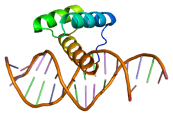 . PMID 9111364. - ↑ Zhang H, Catron KM, Abate-Shen C (Mar 1996). "A role for the Msx-1 homeodomain in transcriptional regulation: residues in the N-terminal arm mediate TATA binding protein interaction and transcriptional repression". Proceedings of the National Academy of Sciences of the United States of America. 93 (5): 1764–9. doi:10.1073/pnas.93.5.1764. PMC 39855