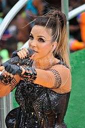 Ivete Maria Dias de Sangalo Cady[1][2] (Brazilian Portuguese: [iˈvɛtʃi sɐ̃ˈɡaɫu]) is a Brazilian singer, songwriter, and occasional actress and television show host. She is one of the most popular and best-selling Brazilian female singers of the present, with six albums released with Banda Eva,[3] and seven more albums in a solo career. Sangalo is most often recognized by her powerful voice, charisma and live performances. Her music is also very popular in Portugal.[4] She sold 15 million copies.[5][6]