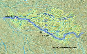 The Macmillan River is a tributary, approximately 320 kilometres (200 mi) long, of the Pelly River in the Yukon Territory of northwestern Canada. It originates in the Mackenzie Mountains and flows in a generally westward direction. The river's watershed extends over 13,800 square kilometres (5,300 sq mi) and its average discharge is about 190 cubic metres per second (6,700 cu ft/s).[1]
