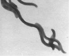 The diversity of MTB is reflected by the high number of different morphotypes found in environmental samples of water or sediment. Commonly observed morphotypes include spherical or ovoid cells (cocci), rod-shaped (bacilli), and spiral bacteria of various dimensions. One of the more distinctive morphotypes is an apparently multicellular bacterium referred to as the many-celled magnetotactic prokaryote (MMP). Regardless of their morphology, all MTB studied so far are motile by means of flagella and are Gram-negative bacteria of various phyla: Despite the majority of known species' being proteobacteria, e.g. Magnetospirillum magneticum an alphaproteobacterium, members of various phyla possess the magnetosome gene cluster, such as Candidatus Magnetobacterium bavaricum a Nitrospira.[13] The arrangement of flagella differs and can be polar, bipolar, or in tufts. The first phylogenetic analysis on magnetotactic bacteria using 16SrRNA gene sequence comparisons was performed by P. Eden et al. in 1991.