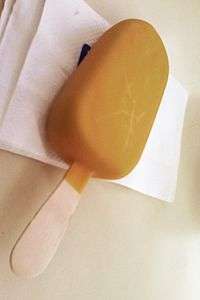 The ice cream today known as Magnum was developed in Belgium at the Ola laboratory (Baasrode) in cooperation with the Belgian chocolate producer Callebaut and released in Germany in January 1989 as an upmarket ice cream for the existing Nogger brand. It was originally manufactured by Frisko in Denmark.[1] The original Magnum (later rebranded as Magnum Classic) consisted of a thick bar of vanilla ice cream on a stick, with a chocolate coating. As there was no real chocolate which could stand the temperature of −40 degrees Celsius, an ad hoc chocolate had to be developed.[2] The original Magnum had a weight of 86 grams and a volume of 120 mL).
