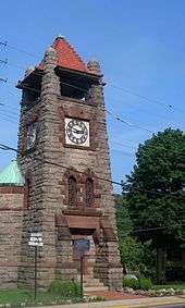The 19th century saw the houses along Main Street quadruple in number. Most of them were built by local builders or merchants, with only one, John Hendrickson's home at 110 Main, intended as an estate of the kind found elsewhere along Long Island's North Shore. The stone clock tower which serves as Roslyn's most identifiable landmark was erected at the junction of Main and Old Northern in 1895.[1]
