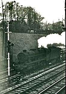 In 1853, a junction was made to the southern end of the Cromford and High Peak Railway now LNWR-owned, at High Peak Junction, and with the latter's support, the Stockport, Disley and Whaley Bridge Railway connected Manchester to the northern end. In 1857, with the LNWR's barely concealed support, the SD&WBR then gained permission to extend to Buxton. It did so by a roundabout route along a massive escarpment to the east of the Goyt Valley, such that it could never become a through express route. Despite an LNWR petition against the Bill and opposition from the SD&WBR, the Midland Railway (Rowsley & Buxton) Act of 25 May 1860 authorised a 15 miles (24 km)[4] line from Rowsley to meet the SD&WBR at Buxton.[3] Work started in September 1860, under Frederic Campion,[4] the Midland Railway's Southern Division engineer,[5] then under Alfred Andrew Langley (from 1883 Midland's Chief Engineer).[6]