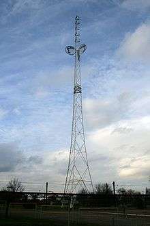 The Mannesmann Tower was a tower on the Hanover fairground in Hanover, Germany. It was a free-standing lattice tower with a triangular cross-section, standing 120 metres high and carried the logo of the Hanover Fair, which erected the tower in 1954, at a height of 89.8 metres. The Mannesmann Tower hdid host aerials for mobile phone services.