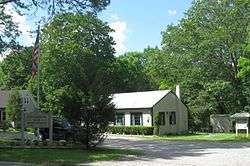 The hamlet of Manorville was a small farming community for many years. The area of the hamlet once laid within the huge tract of land known as Manor St. George,[3] a land grant given to Col. William "Tangier" Smith in 1693 for recognition of his service as governor of Tangier in Morocco. In 1844, the Long Island Rail Road built a station called "St. George's Manor", which was situated off of Ryerson Avenue. However, Seth Raynor, the station agent who was a patriot during the American Revolutionary War, disliked the name due to its similarity to the British and their colonial dominance (St. George, the patron saint of England, is a symbol of the English monarchy), and decided to paint over the sign, leaving only the word "Manor". The hamlet changed its name to "Manorville" with the opening of its post office in 1907, but timetables and Long Island Rail Road documents retained the name "Manor" until 1907 or 1908.[4]