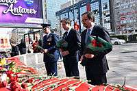 US Deputy Secretary of State Tony Blinken, US Ambassador to Turkey John Bass and Defense Attaché Brig. Gen. Marc H. Sasseville pay their respects to the victims in a memorial