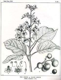 At that time Maiden was Director of the Botanic Gardens and Government Botanist, and was greatly impressed by the standard of her work, considering her "the most accomplished botanical artist in New South Wales", and inviting her to produce the illustrations for "A Critical Revision of the Genus Eucalyptus", which he was writing. Consequently, she spent 12½ hours a week at the Botanic Gardens and 25 hours at the Forestry Department. In the end Flockton stayed on at the Botanic Gardens for five years beyond her retirement age, her last day of work at the Gardens being on 24 March 1927. In recognition of her contributions to botanical art, and referring to her as joint author of his works, Maiden named a few species after her - Eucalyptus flocktoniae, Acacia flocktoniae and the Dorrigo Daisy-bush Olearia flocktoniae.[2][3]