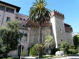 - Ducal Palace (also Palazzo Cybo Malaspina, 16th century), now the seat of the Fine Arts Academy. Built over pre-existing Lombard fortification, it dates to the reign of Guglielmo Malaspina, becoming in 1448 the permanent seat of the dynasty. It includes two distinct edifices: the Castello Malaspiniano, dating to the 13th century, and the Renaissance palace, begun by Alberico I in the late 16th century. Under the medieval loggia are exposed several ancient Roman findings.