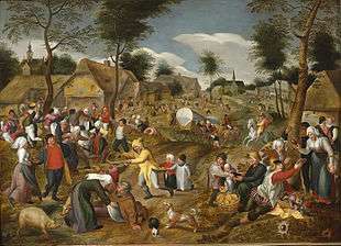 Marten van Cleve the Elder[1] (Antwerp, c. 1527 – Antwerp, before 24 November 1581) was a Flemish painter and draftsman active in Antwerp between 1551 and 1581.[2][3] Van Cleve is mainly known for his genre scenes with peasants and landscapes, which show a certain resemblance with the work of Pieter Bruegel the Elder.[2] Marten van Cleve was one of the leading Flemish artists of his generation. His subjects and compositions were an important influence on the work of Pieter Brueghel the Younger and other genre painters of his generation.[4]